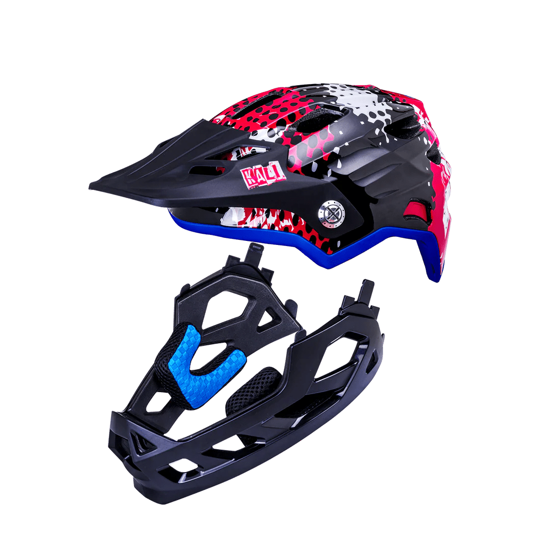 The Maya Full Face Child Helmet converts from an added piece-of-mind full face to a ready-for-the-trails enduro lid with the press of a button. Okay, to be more accurate it’s two buttons, but you get the idea.