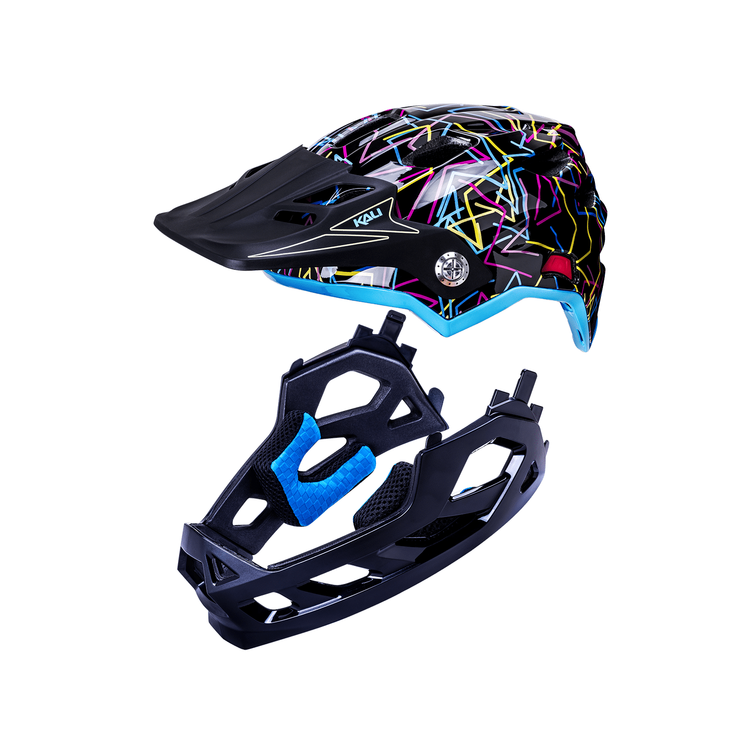 The Maya Full Face Child Helmet converts from an added piece-of-mind full face to a ready-for-the-trails enduro lid with the press of a button. Okay, to be more accurate it’s two buttons, but you get the idea.